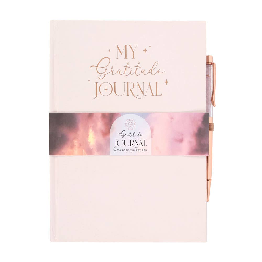 Gratitude Journal Notebook with Rose Quartz Crytal Chip Pen
